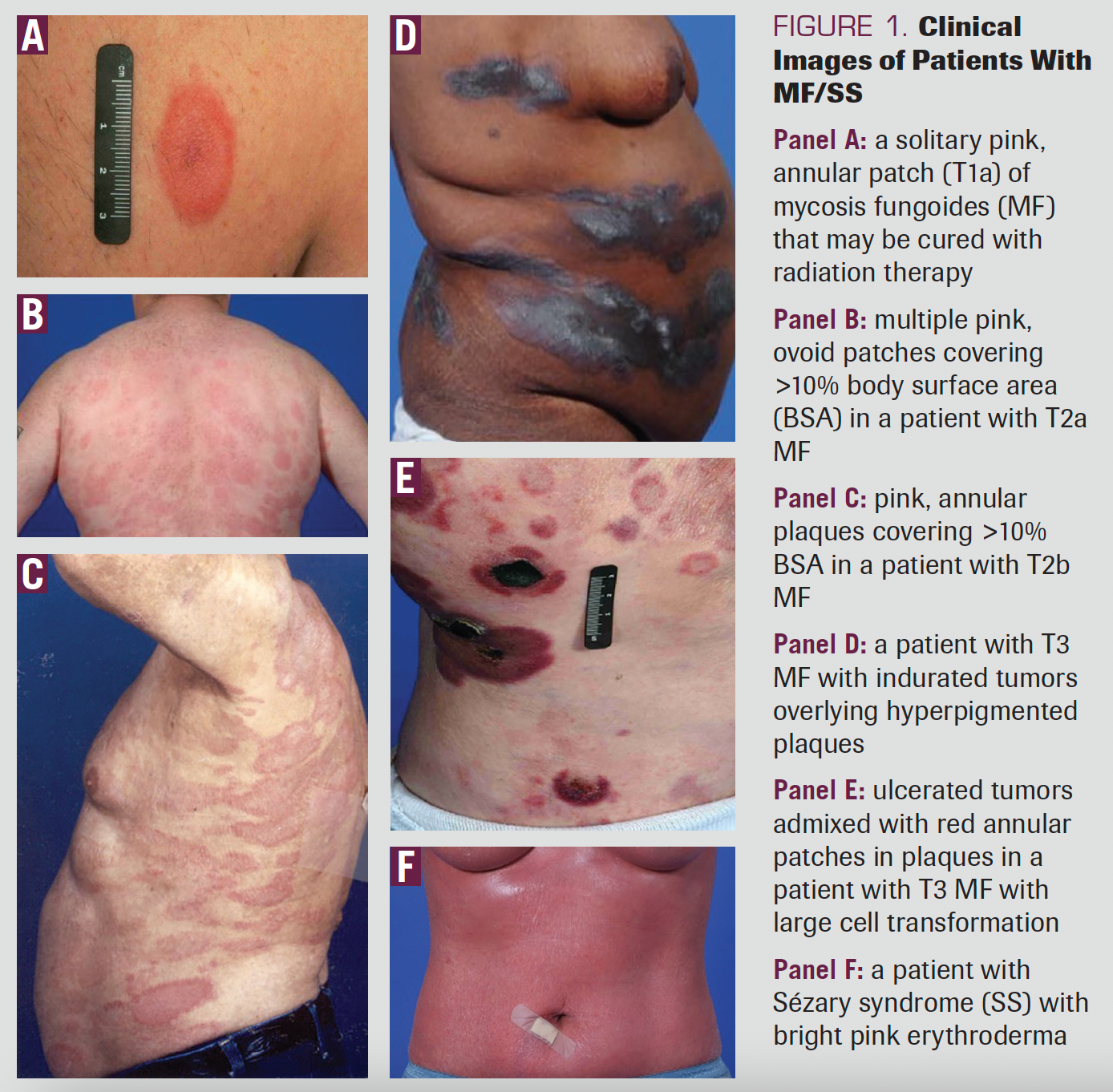 Cutaneous T-cell lymphoma (CTCL) describes a group of clinically heterogeneous T-cell lymphomas that arise in the skin.1 Mycosis fungoides (MF), the most common CTCL, represents 60% to 80% of all CTCLs whereas Sézary syndrome (SS), the erythrodermic and leukemic variant, affects fewer than 10% of patients with CTCL. Most patients with MF present with stage IA disease, defined as patches and plaques involving less than 10% of the body surface area (Figure 1). For most individuals diagnosed with early-stage disease, this is a chronic skin affliction managed with skin-directed therapy (SDT) with acceptable disease control and possible complete remissions. If the disease progresses, the treatment of MF/SS consists of sequential therapies that have increasing toxicity and potential immunosuppression.