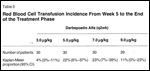 Red Blood Cell Transfusion Incidence From Week 5 to the End of the Treatment Phase
