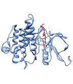 Structure of ABL1 kinase domain in complex with dasatinib; source: SocratesJedi, Wikimedia Commons