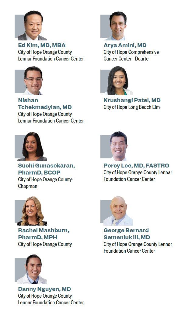 The panel was led by Ed Kim, MD, MBA, who is physician in chief at City of Hope Orange County Lennar Foundation Cancer Center, vice physician in chief of the City of Hope National Medical Center, professor in the Department of Medical Oncology and Therapeutics Research, and Construction Industries Alliance City of Hope Orange County Physician in Chief Chair. Panel members included Nishan Tchekmedyian, MD, associate clinical professor in the Department of Medical Oncology and Therapeutics Research and deputy physician in chief at the City of Hope Orange County Lennar Foundation Cancer Center; Suchi Gunasekaran, PharmD, BCOP, clinical pharmacy manager and PGY1 residency program coordinator at City of Hope-Chapman; Rachel Mashburn, PharmD, MPH, executive director of pharmacy at City of Hope Orange County; Danny Nguyen, MD, assistant clinical professor in the Department of Medical Oncology and Therapeutics Research at City of Hope Orange County Lennar Foundation Cancer Center; Arya Amini, MD, associate professor in the Department of Radiation Oncology and chief of thoracic radiotherapy at City of Hope Comprehensive Cancer Center - Duarte; Krushangi Patel, MD, assistant clinical professor in the Department of Medical Oncology and Therapeutics Research at City of Hope Long Beach Elm; Percy Lee, MD, FASTRO, professor and vice chair of clinical research in the Department of Radiation Oncology and medical director of Orange County and Coastal Region Radiation Oncology at City of Hope Orange County; and George Bernard Semeniuk III, MD, clinical professor in the Department of Medical Oncology and Therapeutics Research at City of Hope Orange County Lennar Foundation Cancer Center and City of Hope Newport Beach.