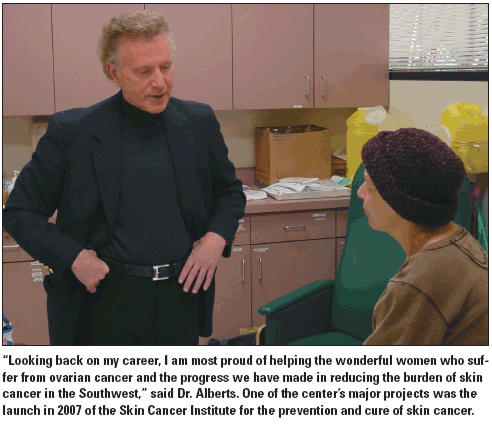In 1975, he accepted an invitation from Sydney Salmon, MD, to help build the Tucson-based cancer center. Thirty years later, Dr. Alberts took over the leadership of the NCI-designated comprehensive cancer center for the entire state.