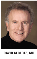 Once in Tucson, he had to jockey for a place on the academic food chain. “My colleague said, ‘Dave, I’m the leukemia guy.’ Another said, ‘I’m the myeloma guy. Those are off-limits for you.’ I said, ‘OK, what’s left?’ They said, ‘Pelvis.’ So I became the GI oncology and the GYN oncology guy,” Dr. Alberts told Oncology News International.