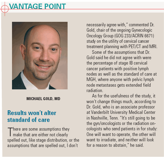 ABSTRACT: Overtreatment in cervical cancer poses a conundrum. Boston-based researchers explain how their PET/CT decision model can triage patients to the correct therapy.