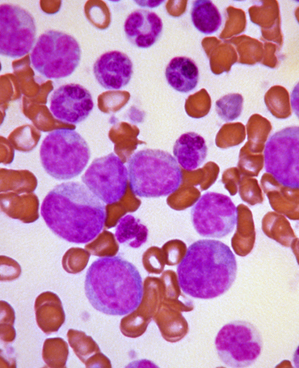 Peripheral blood smear revealing the histopathologic features indicative of a blast crisis in a case of CML