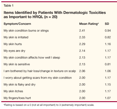 EGFR Dermatologic Toxicities and HRQL: Interviews With Patients and Expert Clinicians