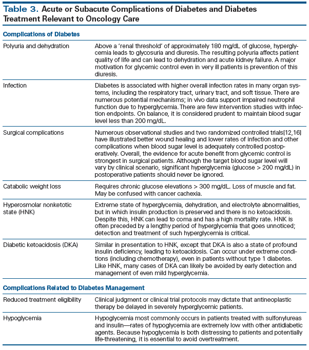 Table 3. Acute or Subacute Complications of Diabetes and Diabetes Treatment Relevant to Oncology Care