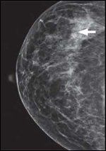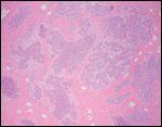 DR. NICOLE KOULANAKIS, surgical oncologist: The patient presented for baseline screening mammogram and was found to have a suspicious area of calcifications in the upper outer quadrant of her right breast (Figures 1 and 2). Stereotactic core needle biopsy revealed pleomorphic lobular carcinoma in situ (LCIS). Her history and physical exam were unremarkable. Family history was significant for two paternal cousins diagnosed with breast cancer in their 50s and a paternal uncle with a “stomach cancer.” The patient underwent a follow-up stereotactic guided biopsy which revealed a 7-mm focus of ER-positive, PR-negative, HER2/neu-negative invasive pleomorphic lobular carcinoma in the setting of diffuse LCIS (Figures 3 and 4). After discussion of her treatment and future cancer-prevention options, the patient elected to undergo bilateral mastectomies, right axillary sentinel lymph node biopsy, and immediate reconstruction. The final pathology demonstrated multiple foci of LCIS present in both mastectomy specimens, and no additional invasive cancer. The sentinel lymph nodes were negative for any metastatic disease.