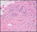 DR. ANTHONY ELIAS, medical oncologist:Invasive lobular cancer is responsible for approximately 10% of all breast cancers. A recent large stage-matched comparison of ILC to IDC using SEER data has reported improved disease-specific survival for ILC, although older reports had shown equivalent or poorer outcomes.[13,34] In concordance with the emerging data on how ER+/PR+ tumors have lower benefit from chemotherapy in general, ILC has also been specifically associated with reduced benefit in achieving pathology complete responses when treated with neoadjuvant chemotherapy, compared with ductal carcinomas.[21,34] In addition, patients often present with larger tumors, have an increased frequency of contralateral cancers (20% vs 11%) compared with invasive ductal carcinoma, and often have a distinct pattern of metastatic spread involving the ovaries and gastrointestinal tract.[21] Pleomorphic invasive lobular carcinoma is an aggressive variant of ILC with a worse prognosis.[35] This subset also shares ER+ tumor biology, although it can be PR negative and shows an increased amplification of HER2/neu. These tumors also frequently demonstrate features of apocrine differentiation.[36]