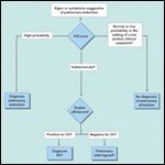 Both ELISA and whole-blood hemagglutination assays have been prospectively studied in clinical management trials and found to have high negative predictive values in outpatients with suspected venous thromboembolism.[ 29,30] These studies suggest that lack of D-dimer elevation combined with a negative noninvasive imaging test reliably excludes lower-extremity DVT, but D-dimer elevation alone neither rules in nor rules out thrombosis.