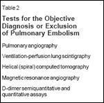 Tests for the Objective Diagnosis or Exclusion of Pulmonary Embolism