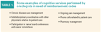 multidisciplinary coordination with other physicians relative to patient care, and participation in tumor board conferences and cancer committees are some examples. Also: ongoing pain management, phone calls related to patient care, and pharmacy management.