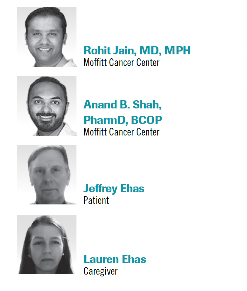 When Jeffrey Ehas was diagnosed with cancer, he and his wife, Lauren Ehas, turned to Moffitt Cancer Center in Tampa, Florida for treatment. With leading clinician Rohit Jain, MD, MPH, and pharmacy oncologist Anand B. Shah, PharmD, BCOP, the Ehas family learned that Jeffrey’s stage IV metastatic bladder cancer could be treated with chemotherapy and combination therapies.