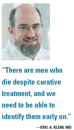 “There are men who die despite curative treatment, and we need to be able to identify them earlier on so we can add additional therapy. There is a small proportion of men who are cured by our current therapy, and there is a huge proportion of men whose natural history is such that they could have avoided therapy completely,” said Eric A. Klein, MD, chair of the Glickman Urological and Kidney Institute in Cleveland.