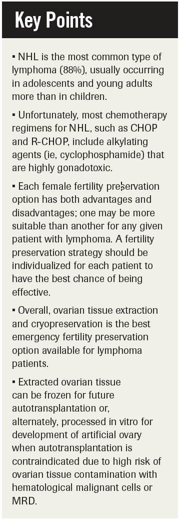 NHL is the most common type of lymphoma, representing 88% of lymphoma cases, and typically occurs in adolescents and young adults more than in children.1-3 In this patient, several challenges are raised regarding fertility preservation, including that: