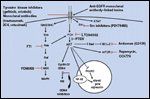 These observations, along with increasing evidence that superfluous growth pathways are active in neoplastic cells, form the basis for testing therapeutic strategies targeting multiple pathways. Indeed, preclinical studies have shown significant and sustained antitumor activity in vitro and in vivo by combining anti-EGFR agents with, for example, inhibitors of the cAMP-dependent protein kinase (type I PKA)[50] or a VEGF antisense oligonucleotide.[51] Other promising strategies have included concurrent blockage of the VEGF receptor (VEGFR) using PTK 787 and EGFR by PKI 166, both tyrosine kinase inhibitors directed at VEGFR and EGFR signaling respectively in a pancreatic model,[52] and the combination of gefitinib with the anti-erbB2 antibody trastuzumab (Herceptin).[53] Figure 3 presents possible polytargeted scenarios against HNSCC.