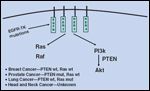 Understanding which HNSCC cancers will respond to EGFR inhibition may also relate to the expression and activity of the remaining family members of EGFR (erbB2-4). Also, the presence of exogenous EGF-related ligands may, in part, govern tumor response to anti-EGFR agents, and thus, dual or multiple blocking of other family members of EGFR may be required to achieve the desired effects.[ 46] Increased expression levels or mutations in downstream proteins such as Ras, Raf, PTEN, and Akt may also predict response, along with other as yet unknown proteins/genes, independent of EGFR expression, as shown in Figure 4.
