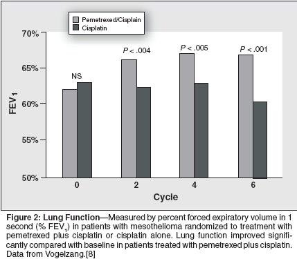 Paoletti P, Pistolesi M, Rusthoven JJ, etal: Correlation of pulmonary function tests withbest tumor response status: Results from thephase III study of pemetrexed + cisplatin vs.cisplatin in malignant pleural mesothelioma(abstract 2651). Proc Am Soc Clin Oncol22:659, 2003.