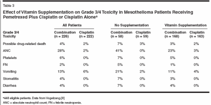 Vogelzang NJ, Rusthoven JJ, SymanowskiJ, et al: Phase III study of pemetrexed in combinationwith cisplatin versus cisplatin alonein patients with malignant pleural mesothelioma.J Clin Oncol 21:2636-2644, 2003.
