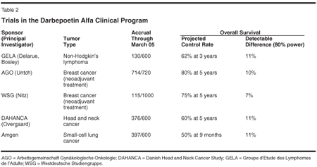 Survival Impact in Cancer: Darbepoetin Alfa Clinical Program