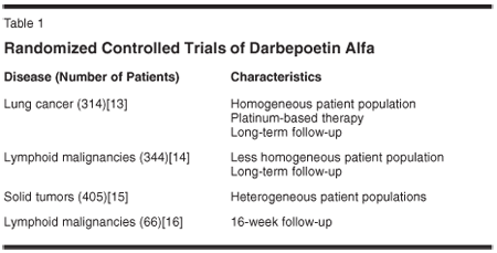 15. Hedenus M, Hansen S, Taylor K, et al: Randomized, dose-finding study of darbepoetin alfa in anaemic patients with lymphoproliferative malignancies. Br J Haematol 119:79-86, 2002.