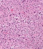 Intermediate magnification micrograph of a pleomorphic undifferentiated sarcoma, H&E stain; source: Nephron, Wikimedia Commons