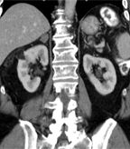 Renal angiomyolipoma: right kidney lesion in CT; source: Hellerhoff, Wikimedia Commons