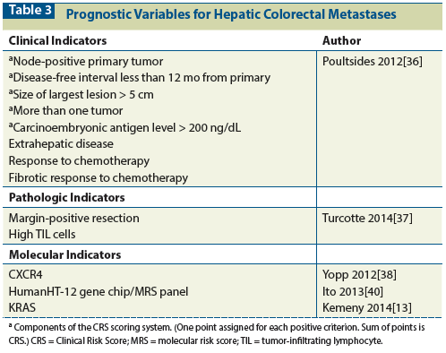 Table 3: Prognostic Variables for Hepatic Colorectal Metastases