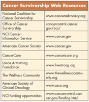 Survivorship care is gaining recognition as a distinct period of oncology care, but opportunities still exist for improving the quality of this care. The need to deliver comprehensive and consistent care to our ever-growing number of cancer survivors is urgent.[13,40] Ensuring their overall well-being will require greater attention to long-term and late effects of treatment, increased disease prevention and health promotion efforts, further education of health care professionals, and improved communication through the use of treatment summaries and survivorship care plans. Health care providers, patients, advocates, policy makers, and program planners now have access to resources for survivorship information. (See box, “Cancer Survivorship Web Resources.”) Ongoing research will be critical to filling in the gaps in this knowledge base.