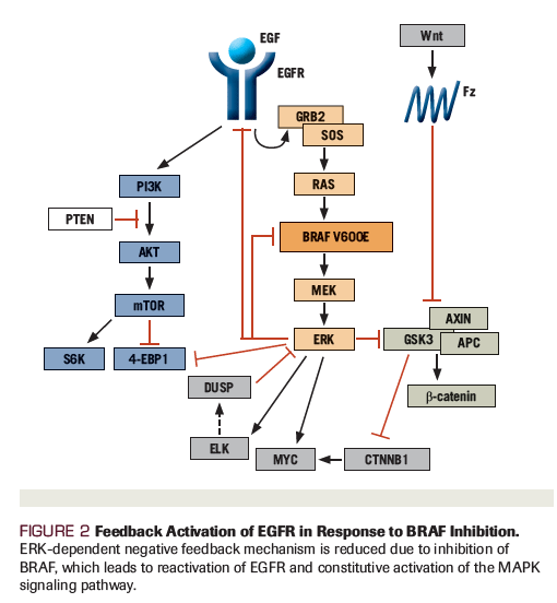26. Corcoran RB, Ebi H, Turke AB, et al. EGFR-mediated reactivation of MAPK signaling contributes to insensitivity of BRAF-mutant colorectal cancers to RAF inhibition with vemurafenib. Cancer Discov. 2012;2:227-35.