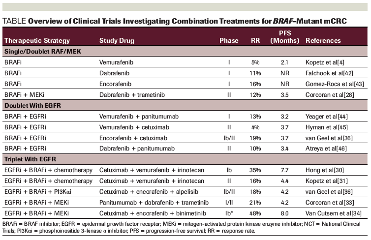 Table. Overview of Clinical Trials Investigating Combination Treatments for BRAF-Mutant mCRC