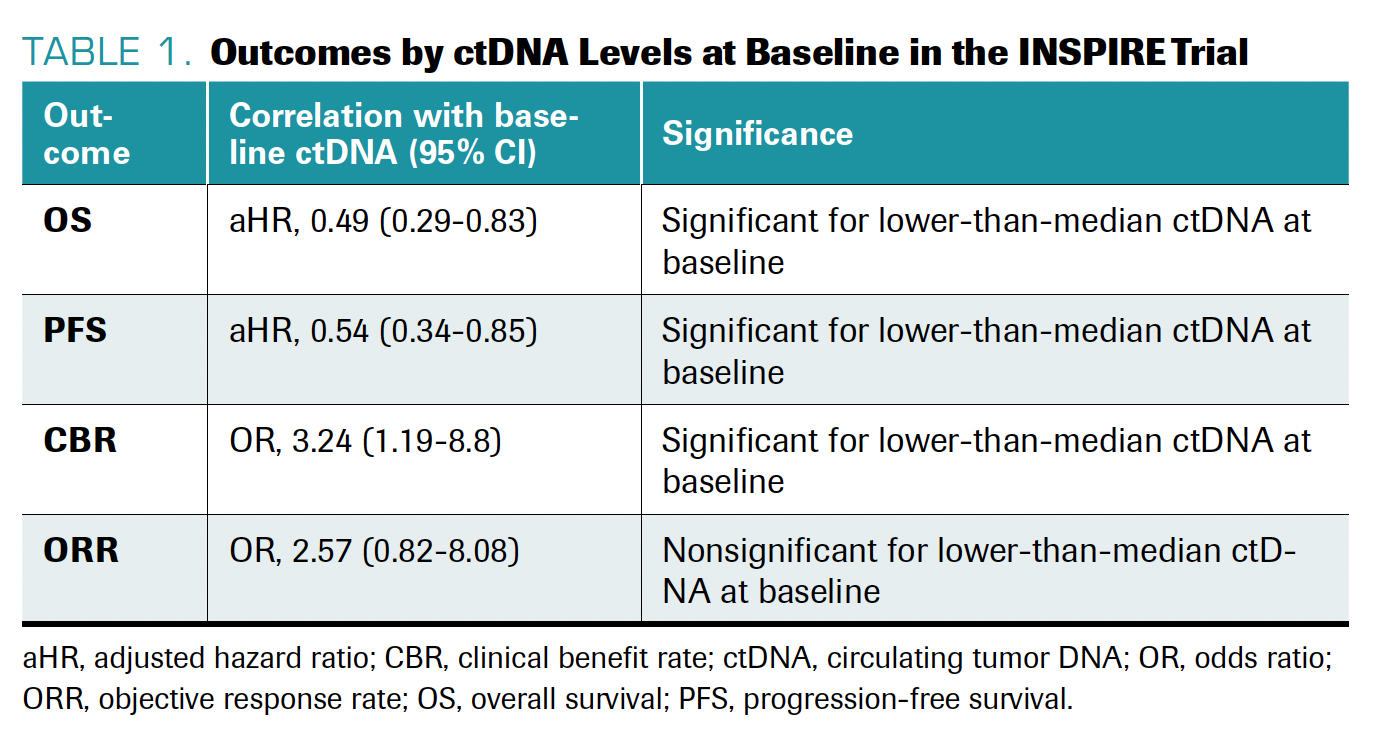 TABLE 1. Outcomes by ctDNA Levels at Baseline in the INSPIRE Trial
