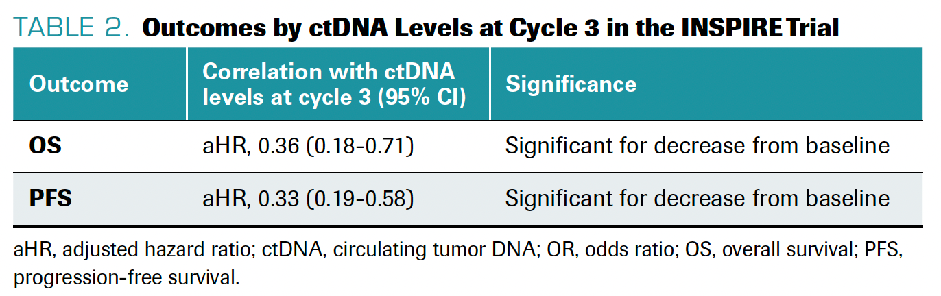 TABLE 2. Outcomes by ctDNA Levels at Cycle 3 in the INSPIRE Trial