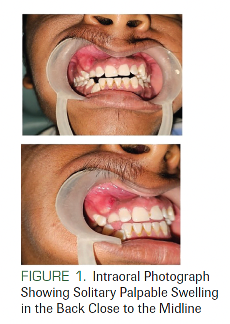 FIGURE 1. Intraoral Photograph Showing Solitary Palpable Swelling in the Back Close to the Midline
