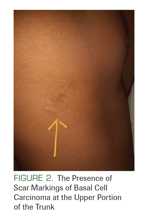 FIGURE 2. The Presence of Scar Markings of Basal Cell Carcinoma at the Upper Portion of the Trunk