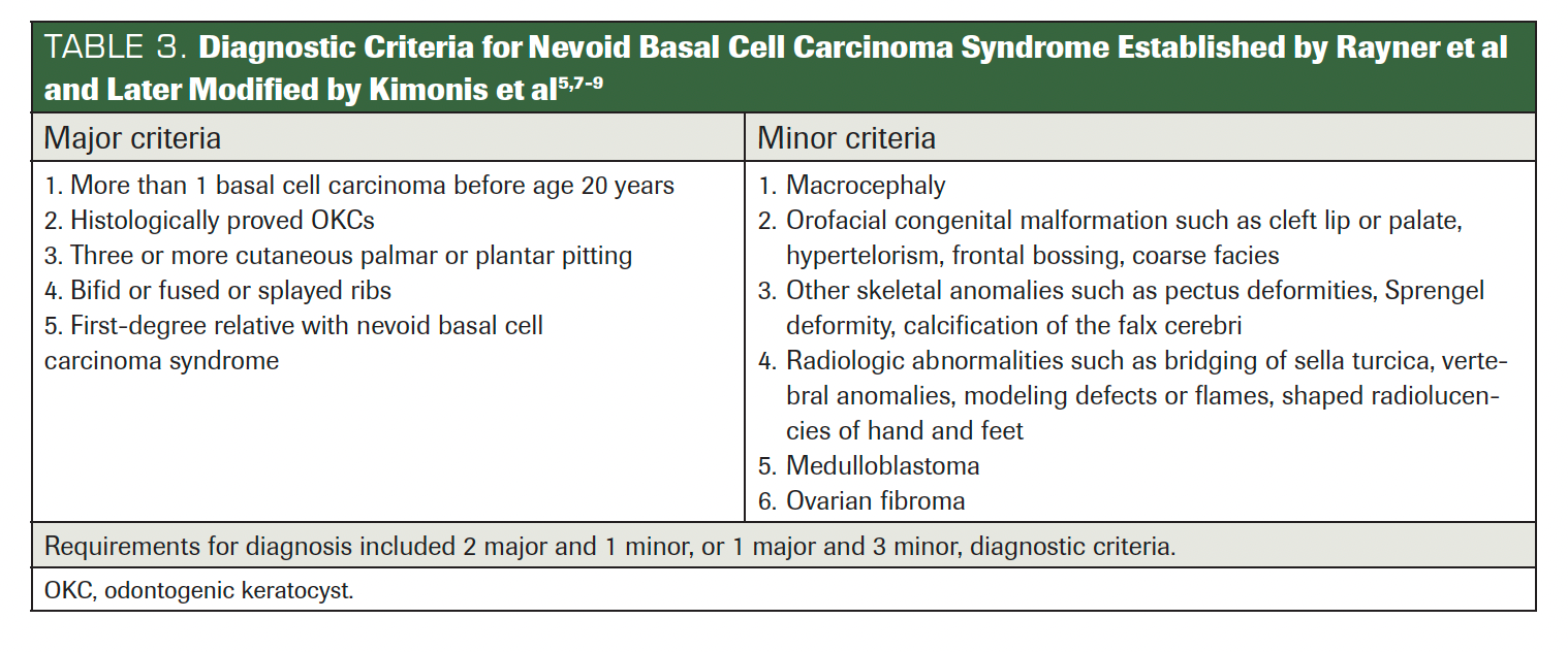 TABLE 3. Diagnostic Criteria for Nevoid Basal Cell Carcinoma Syndrome Established by Rayner et al and Later Modified by Kimonis et al5,7-9