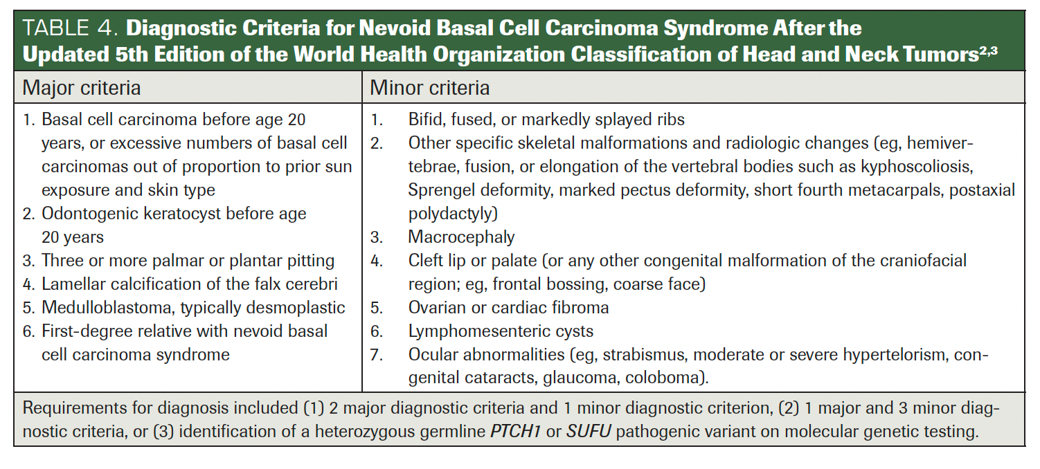 TABLE 4. Diagnostic Criteria for Nevoid Basal Cell Carcinoma Syndrome After the Updated 5th Edition of the World Health Organization Classification of Head and Neck Tumors