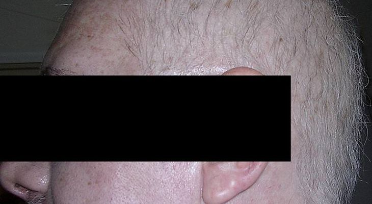 A 65-year-old man experienced extensive hair loss following the second round of a chemotherapeutic regimen. The alopecia ultimately evolved into total hair loss, although near total recovery occurred about 4 months following cessation of chemotherapy.
