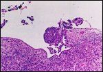 • Microscopically, the ovarian component must be: (1) nonexistent, (2) confined to ovarian surface epithelium with no evidence of cortical invasion; (3) involve ovarian surface epithelium and underlying cortical stroma but with any given tumor size less than 5 ´ 5 mm; and (4) tumor less than 5 ´ 5 mm within ovarian stroma with or without associated surface disease.