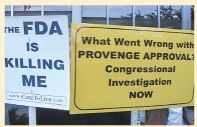 The denial of approval for Provenge set off strident protests from advocates who believe the drug should have been approved based on the available data. These advocates' voices were joined by others, including the Abigail Alliance for Better Access to Developmental Drugs, who think that terminally ill patients should have access to investigational drugs after phase I trials have shown safety. In September, the advocacy groups held a small, staged protest outside of FDA's Rockville, Maryland, offices (see photographs of the protest below, courtesy of Leslie Mulkey).