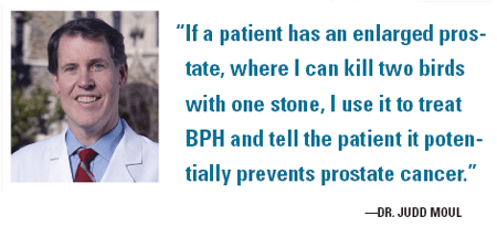 Dr. Moul noted, “If a patient has an enlarged prostate or urinary symptoms, where I can kill two birds with one stone, I use it to treat BPH and tell them it potentially prevents prostate cancer as well.”