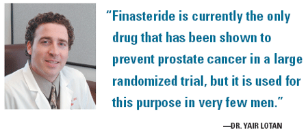 “Finasteride is currently the only drug that has been shown to prevent prostate cancer in a large randomized trial, but it is used for this purpose in very few men,” said Yair Lotan, MD, of the University of Texas Southwestern Medical Center, Dallas, who has co-authored three studies further analyzing and applying the PCPT data.