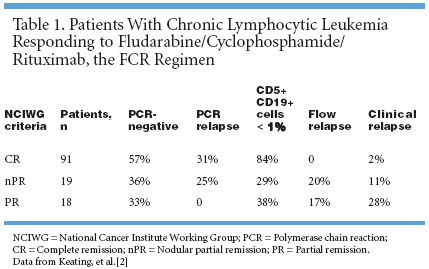 Keating M, Manshouri T,O’Brien S, et al: A high proportion ofmolecular remission can be obtainedwith a fludarabine, cyclophosphamide,rituximab combination (FCR)in chronic lymphocytic leukemia(CLL) (abstract 771). Blood 100:205a,2002.