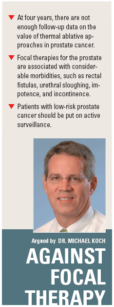 Indeed, focal therapies for prostate cancer (see Table on page 29) are associated with considerable morbidities and have not been proven to cure prostate cancer, or at least reduce the morbidity of this disease, according to Michael O. Koch, MD, chairman of the department of urology at Indiana University in Indianapolis.