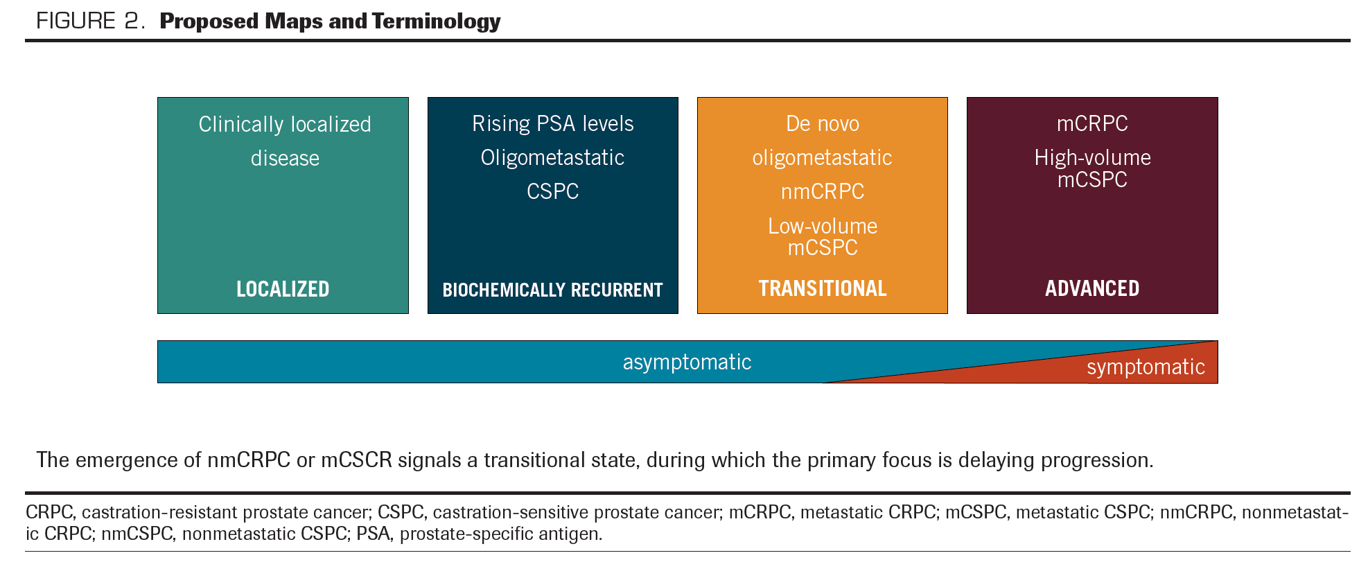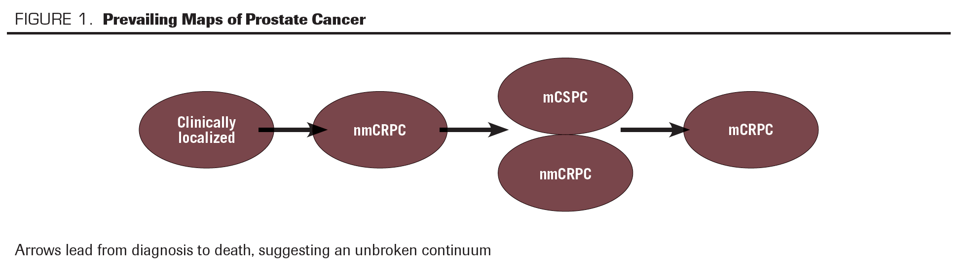 Models of prostate cancer (PCa) progression guide the clinician in decisions about patient care. The prevailing categorization of PCa, however, does not take into account next-generation imaging (NGI), molecular and biologic markers of disease progression, or the impact of genetic alterations, either prognostically or in response to therapy. In addition, the current model of clinical states characterizes PCa as a stepwise continuum, obscuring the important interval when transitions occur from one clinical state to another. The transitions from nonmetastatic castration-resistant PCa (nmCRPC) or metastatic castration-sensitive PCa (mCSPC) to metastatic castration-resistant PCa (mCRPC) are seminal events in disease progression and are associated with significantly decreased survival if left unrecognized and untreated.