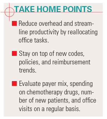 Running an oncology practice remains challenging, and practitioners must adapt to nearly constant changes in coding and drug management, the burden of fixed overhead, and changes in insurance and Medicare reimbursement. By maximizing services and streamlining office operations, oncology practices can avoid common setbacks and improve profitability while continuing to make patient care the number one priority.
