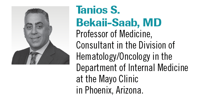 The landscape in metastatic CRC has become quite complex, and sequencing patterns depend on genomic alterations, the age of the patients, and performance status. There are a lot of factors that enter the equation as we think about our first line of attack, then second line, third line, etc. What’s happening more and more is we’re finding a lot of these biologics and immunotherapeutics for those patients where that is an indication and where the target is present. We’re starting to move those to earlier lines of therapy, either [in] clinical trials or as part of our clinical practice, for those patients who [have] microsatellite instability [MSI]-high [disease], starting with pembrolizumab [Keytruda] and then chemotherapy or other options for about 50% of those patients. For the majority of patients, chemotherapy remains the first line, plus or minus a biologic. A lot of the biologics that have been with the targeted biologics and later lines of therapies are being studied in the first line across multiple trials.
