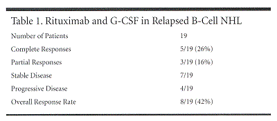 AMSTERDAM-Adding granulocyte colony-stimulating factor (G-CSF) to rituximab may improve response duration and increase the proportion of complete responses in patients with relapsed B-cell non-Hodgkin’s lymphoma (NHL). "Although the overall response rate seems comparable to data reported for rituximab monotherapy, the complete response rate is higher, and remission duration in this pilot phase-II study is remarkably long," Lizette E. van der Kolk, MD, reported in a poster presentation. Dr. van der Kolk is a member of the Department of Hematology, Academic Medical Center, Amsterdam, The Netherlands.