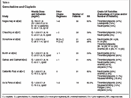 42. de la Pena HF, Tellez E, Bastarrachea J, et al: Gemcitabine plus cisplatin as a palliative treatment in metastatic or refractory breast cancer (MRBC) (abstract 1990). Proc Am Soc Clin Oncol 20:2001.