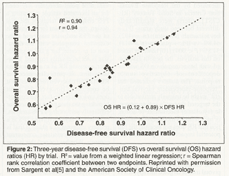 5. Sargent DJ, Wieand HS, Haller DG, et al: Disease-free survival versus overall survival as a primary end point for adjuvant colon cancer studies: Individual patient data from 20,898 patients on 18 randomized trials. JClin Oncol 23:8664-8670, 2005.