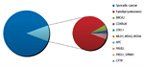 Familial clustering, evident in many cancer types, can in part be attributed to shared environmental exposures as well as to genetic susceptibility conferred by low-, medium-, or high-risk inherited factors. The heritable component of disease can be measured through studies comparing rates of disease in monozygotic vs dizygotic twins. In the case of cancer, an increased heritability has been shown for a variety of cancers, including prostate, colorectal, and breast cancers.[1] Further evidence for increased heritability can be ascertained from epidemiologic studies using cancer data from homogenous populations that show greater than expected observed rates of certain types of cancer within families.[2] In the case of families with multiple affected individuals in subsequent generations, there is heightened suspicion for rare mutations in genes that confer a high risk of cancer. In families where the pattern is not as striking, the cancer predisposition may still be genetic in origin but could be due to lower-penetrance risk variants. Genome-wide association studies have uncovered common risk variants in the genome that confer susceptibility to certain types of cancer[3]; however, independently, each of these low-risk variants only marginally increases a person’s risk of cancer above that of the general population. Multiplicative models of common risk variants could potentially explain a proportion of familial clustering or be used to modify risk within moderate- to high-risk pedigrees, but as of yet, the clinical utility of redefining risk based on common variation has not been demonstrated.